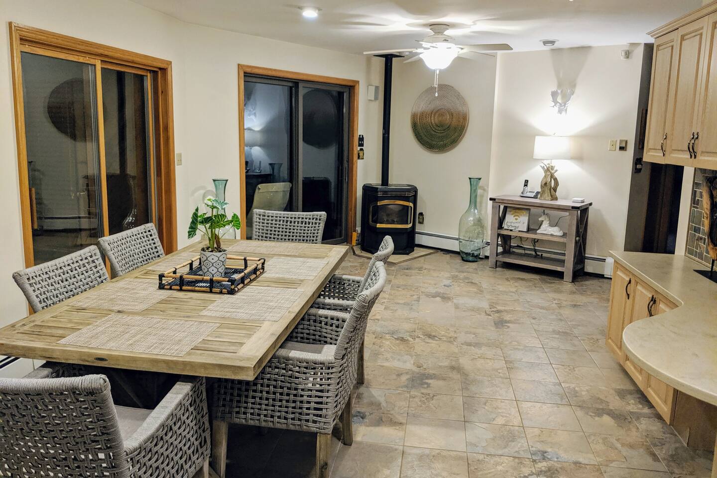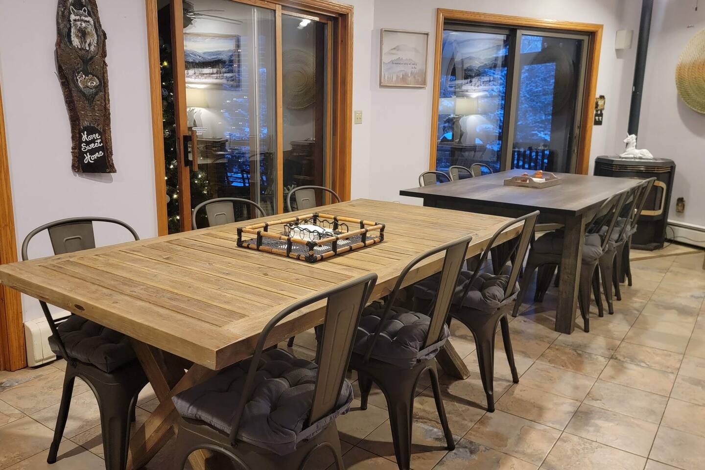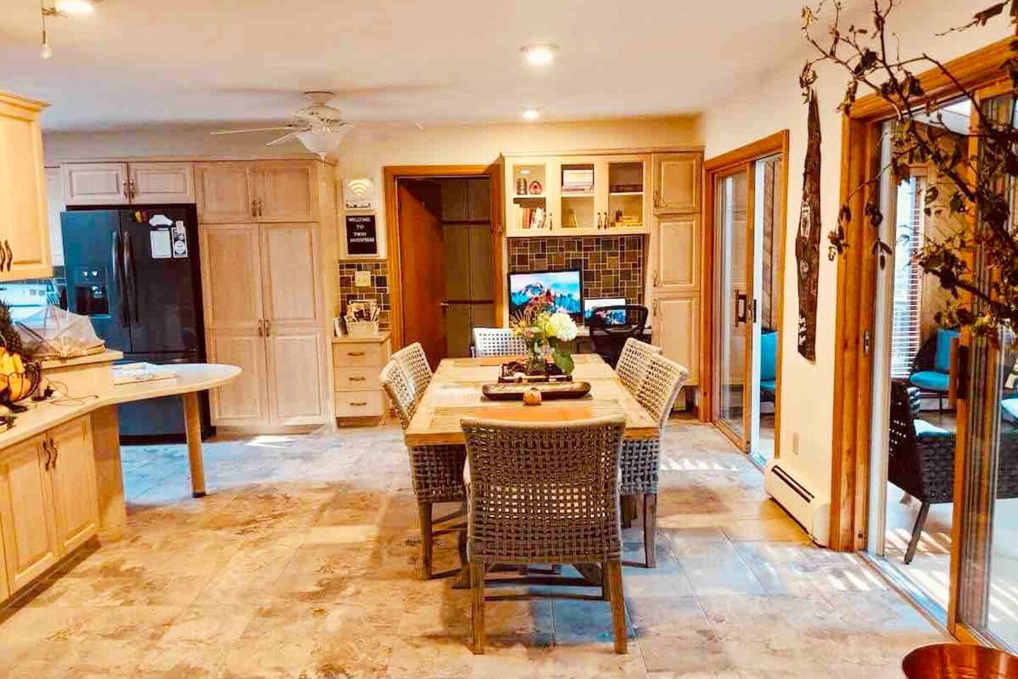 β€οΈ Tap the heart in the top right to save this listing and share it with your travel crew! π² Welcome to your private riverside getaway in the White Mountains, where peace, comfort, and connection come naturally. Nestled beside the π Little River and surrounded by forest views and fresh mountain air, this one-of-a-kind retreat is made for unforgettable moments. Wake up to birdsong and sip coffee on the deck as the mist rises off the river. Spend your days hiking, skiing, chasing waterfalls, or simply unwinding in the sunroom or screened gazebo. In the evening, gather around the π₯ firepit, grill dinner under the stars, and let the laughter flow. Slide open the bedroom doors, feel the cool breeze, and fall asleep to the sound of the river. Whether you're resting after an adventure or reconnecting with loved ones, every corner of this space is designed for comfort, joy, and togetherness. π‘ This listing includes the Main House (5BR/3.5BA) and the Guest House (2BR/2BA), offering plenty of room for families and groups. Main House Highlights: π King master suite with ensuite bath π 4 additional bedrooms (mix of queen, twin, & trundle beds) π― Game room with pool table, foosball, & board games π½οΈ Full kitchen, dining room, living room π Sunroom, screened porch, balcony, and deck π§Ί Laundry room, garage, high-speed Wi-Fi Guest House Highlights: π 2 queen bedrooms π 2 full bathrooms (one ensuite) π₯ Gas fireplace in the living room π½οΈ Full kitchen & dining area π§Ί Laundry room β Sleeps 16+ comfortably with memory foam beds, daybeds, air mattresses & cozy couches β Optional private suite with king bed available, ask us for details! π³ Set on 2 private acres with: π₯ Firepit & BBQ grill π Screened gazebo πͺ΅ Multiple decks & picnic tables π Private river access π Horse barn & plenty of open space for kids to explore πLocated in the heart of the White Mountains, close to Bretton Woods, Franconia Notch, Mt. Washington, skiing, hiking trails, waterfalls, and so much more. β¨ Twin Mountain River House is part of a small collection of top-rated thoughtfully cared-for mountain retreats. This is more than a stay; itβs a place where stories are shared, memories are made, and nature is part of every moment. We can't wait to welcome you.